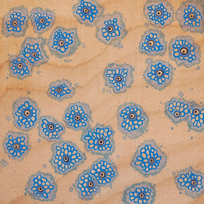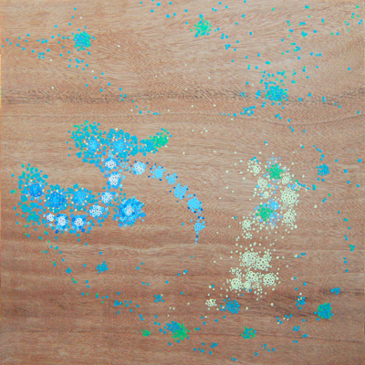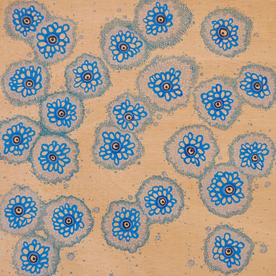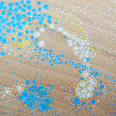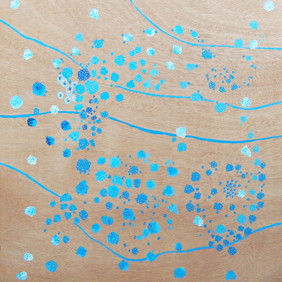 Cells in movement I. Gouache & Colour Pencil Painting on wood frame 30 x 30 cm