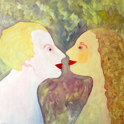 Kiss - Oil & Mixed Media on Wood Panel, 51 x 51cm, 2009
