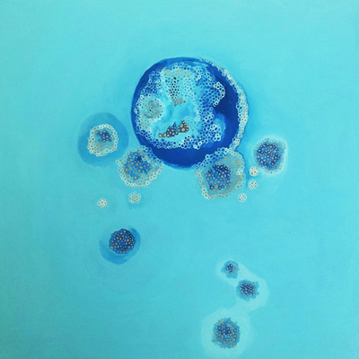 Cells in movement. Oil painting on wood frame 30 x 30 cm